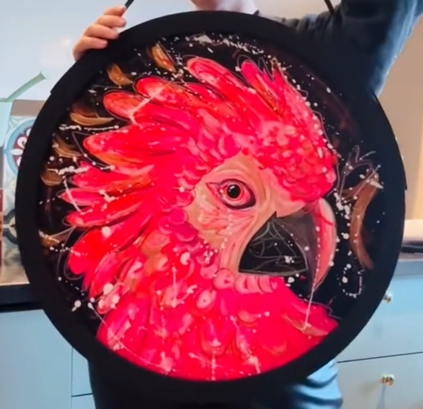 Sprankelend, trots en vol karakter — Queen of Radiance straalt pure kracht en elegantie uit. Deze flamboyante vogel, gehuld in lagen van felroze, goud en subtiele witaccenten, is een ode aan zelfexpressie en eigenheid. De verf spat letterlijk van het paneel af in een explosie van energie en glitterachtige levendigheid.